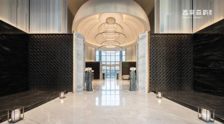 酒店式落客大堂挑高达7.5米恢弘之势,开启渐进式的礼序归家情境风范之间,让停留成为至高无上的仪式。