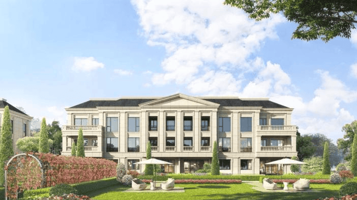 法式排屋:100套,建面165-183㎡,实得面积约400㎡