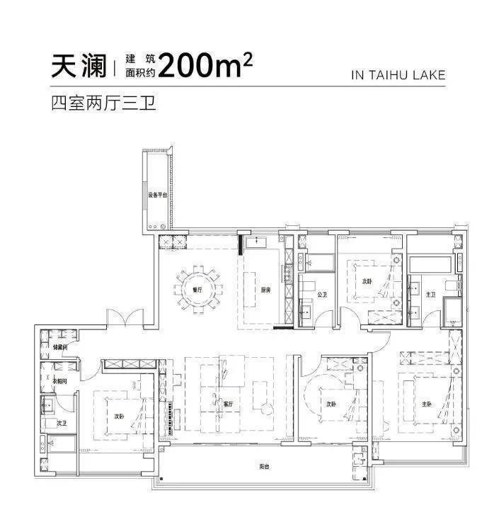 198㎡户型南向约18.5米采光面+9米瞰湖阳台