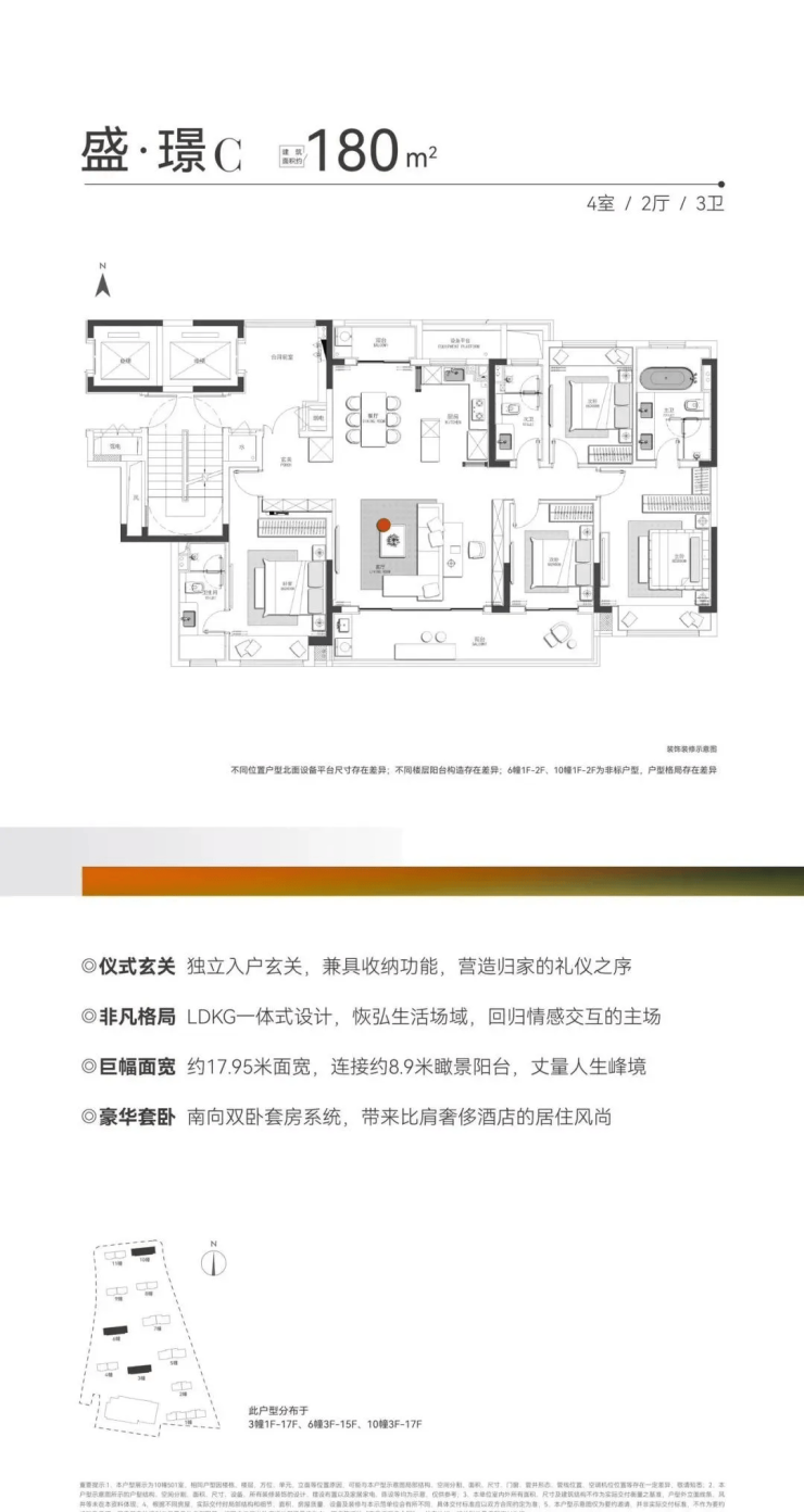项目主力打造149-235㎡全装修奢阔大宅,满足不同改善家庭需求。149㎡户型拥有约15.2米南向大面宽,采用LDKG设计,270°采光阳台搭配5个大飘窗,采光通风极佳;三卧朝南,主卧配备独立衣帽间、卫浴,私密性与舒适度兼具。180㎡户型细节满满,厨房防水翻边、油烟机感应系统、岛台无线充电等设计,尽显人性化关怀。400 998 3632上润璟庭营销中心电话