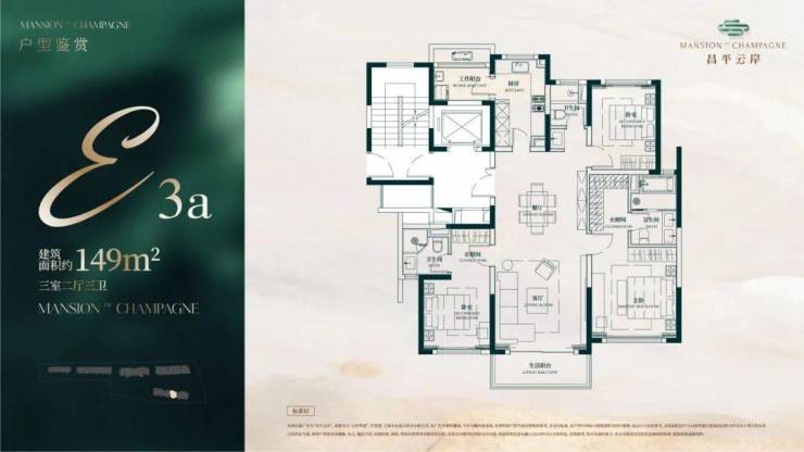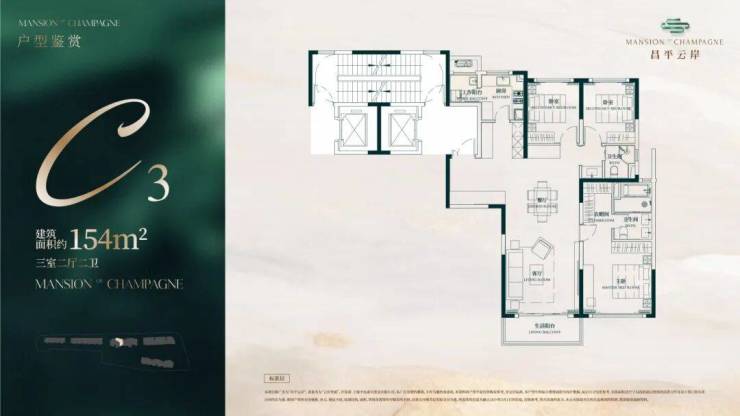 约154㎡做了大三房设计,空间相当奢阔!主卧套房设计尊崇感十足!