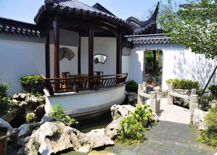 社区内汲取江南园林造园手法,打造"一环一院七园"景观体系,包括: