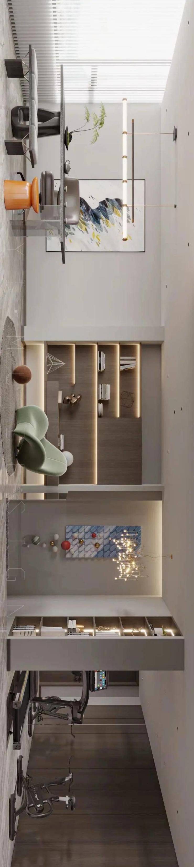 原始户型结构空间利用率低,原始楼梯位置以及预留电梯位置阻碍南北动线的合理性。设计师调整了楼梯和电梯位置,使二楼三楼房间空间布局更加合理性。露台空间土建合理利用,增加内部空间的使用率。