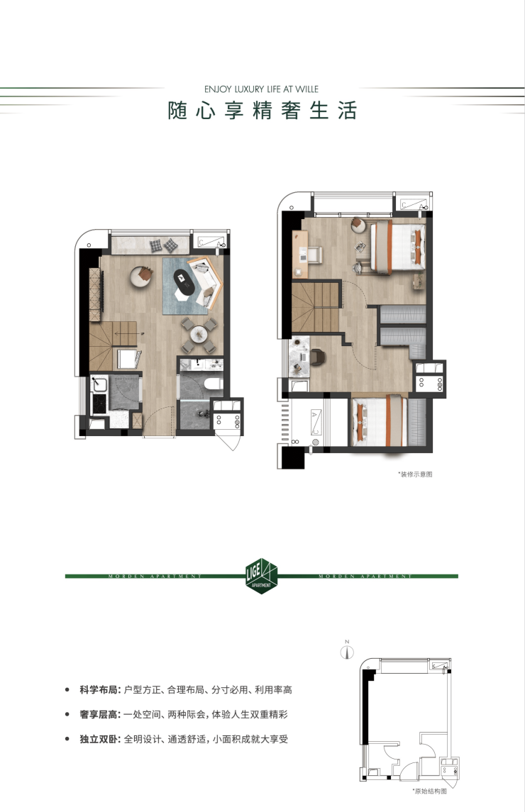 定位为40年产权精装酒店式公寓,主打Loft复式户型,现房销售