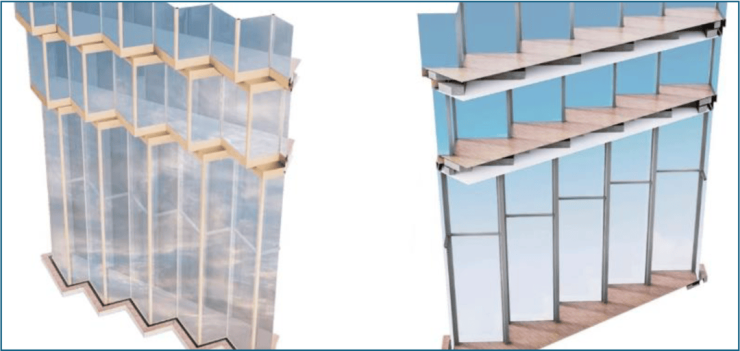 该项目幕墙面积约 12万㎡,由深圳 PAG朋格幕墙负责该项目的幕墙设计。幕墙系统主要有错位单元幕墙、竖明横隐单元幕墙、裙房框架玻璃幕墙、大跨锯齿幕墙系统、标准锯齿幕墙系统、单元幕墙系统、核心筒后单元幕墙系统、球型框架幕墙系统、单元交锯齿幕墙交接位系统等。