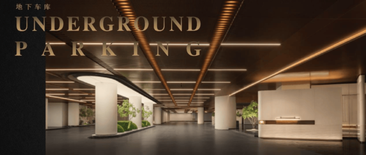 地库设计:地库采用全铝板吊顶、环氧金磨石地面,配备环岛落客区、仿天光照明、酒店式大堂等,提供顶级归家体验。