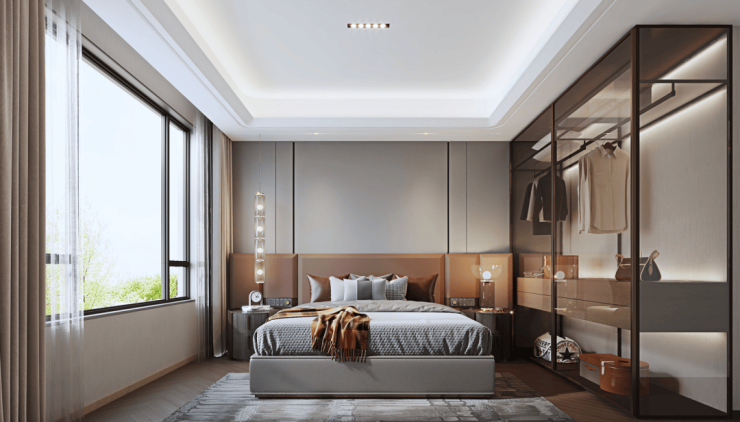 自带独卫、衣帽间和大气飘窗的尊荣套房式主卧,全域进深尺度足有约8.7米,单单独立卫生间就有大约6个平方,是男女主人独享私域的浪漫主场,加上足够收纳琳琅满目的衣饰和太太美好心情的敞阔衣帽间,尊荣指数五颗星。