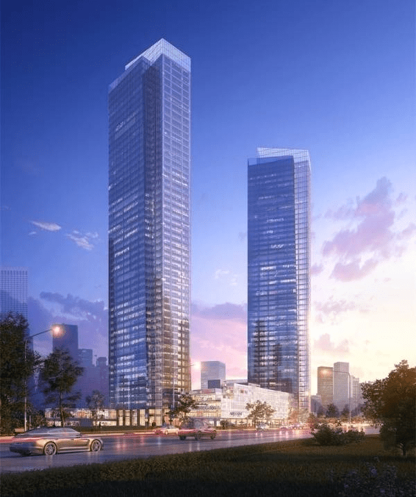 它坐落于 钱江世纪城金鸡路与利一路交叉口 ,直线距钱塘江仅 450米 ,240米超高层双塔直插云霄,是奥体板块 海拔最高、视野最广 的江景大平层项目。