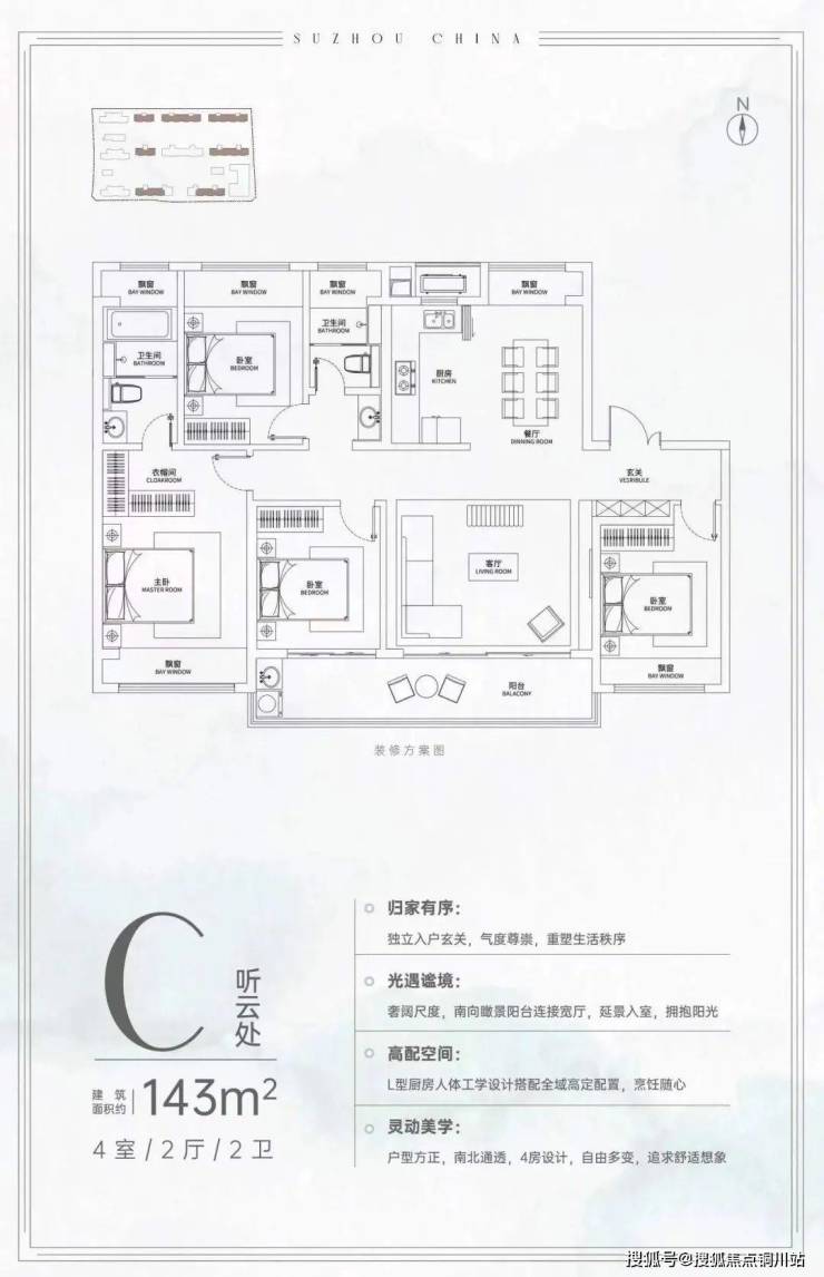 洋房:143-168㎡四居室,南北通透+主卧套房