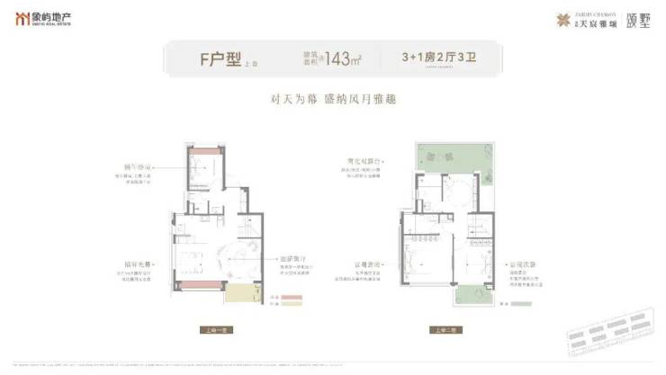 叠墅/联排:建面约143–232㎡,带庭院/露台,主打改善家庭