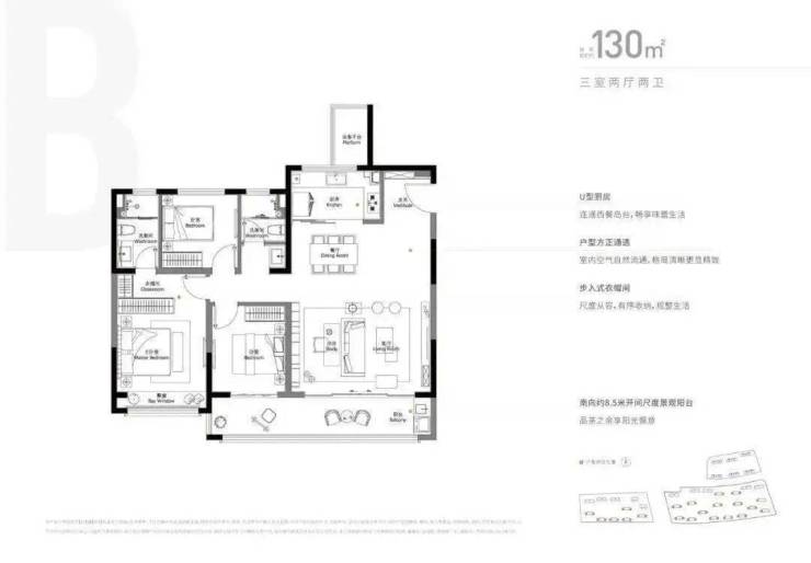 约130㎡户型,以约12.1m南向三面宽,邀阳光清风常驻;主卧化身酒店式尊崇套房,独立全明卫浴辉映品质;约13.6㎡南向观景阳台,将风景延展成日常。