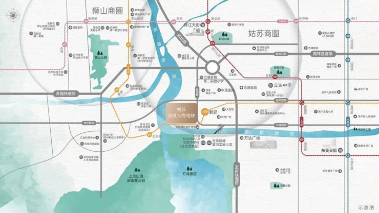 路网:紧邻友新快速路与苏福快速路,自驾15分钟覆盖园区、高新区、姑苏核心区。