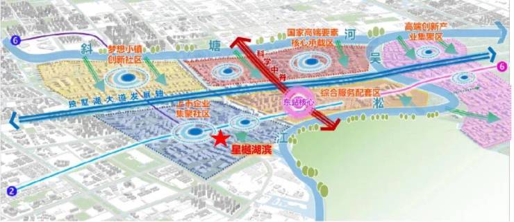 苏州东站枢纽,苏沪发展桥头堡:深度参与共建共享虹桥国际开放枢纽,引领区域产业对接融入上海和长三角一体化发展,实现环沪半小时生活圈。