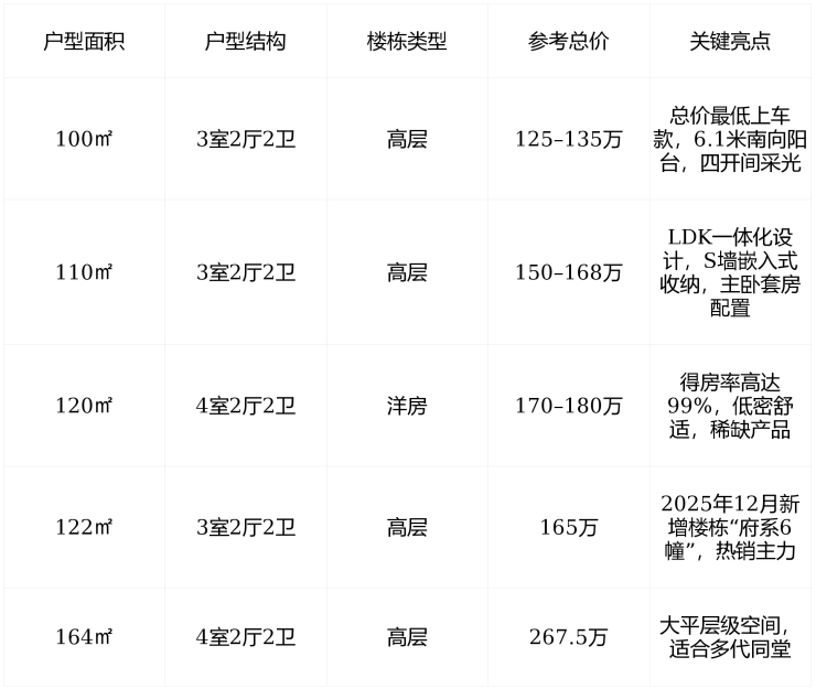 销售状态 :持续加推,2025年底至今新增多栋在售,部分户型仍有议价空间, 工抵房/特价房需实地确认 。