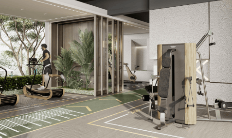 中铁·堂阅以家为中心,对延伸出来的公共空间、生活方式进行深入思考,巧妙利用楼栋架空层,构建“文娱”“健身”两大主题,打造一个邻里共情与互动的美好社区。