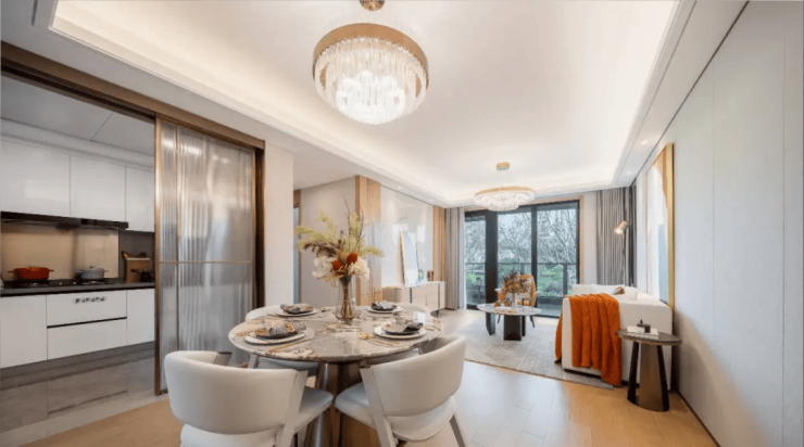 科技系统:采用“地源热泵系统 + 表层辐射系统 + 全置换新风系统”,实现室内恒温(20-26℃)、恒湿(30%-70%)、恒氧。无论冬夏,室内无需安装空调地暖,即可享受四季如春的舒适环境,且系统支持分户智控,满足不同家庭成员的个性化需求^。