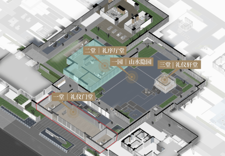 社区汲取宋代美学精髓,打造“一园三堂”园林格局,融合“引、礼、廊、趣、赏、院”六大元素,营造“可行、可游、可居”的东方栖心之所。外立面采用昆石同色石材+铝板+高透玻璃,屋顶融入飞檐设计,庄重大气。