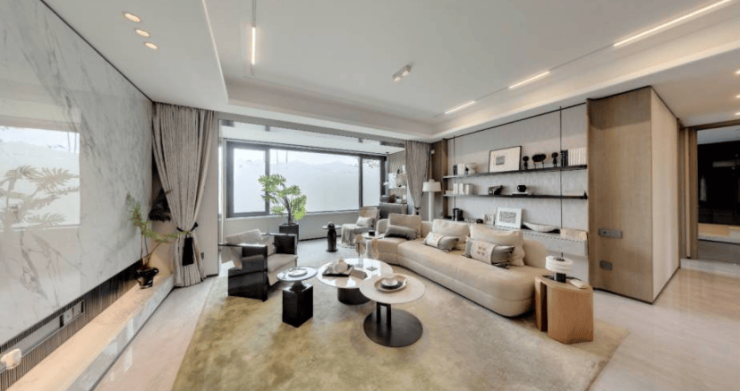 独立玄关入室、开间约6米的客厅、全屋带飘窗...空间大而奢,洋房做出了别墅的气质~