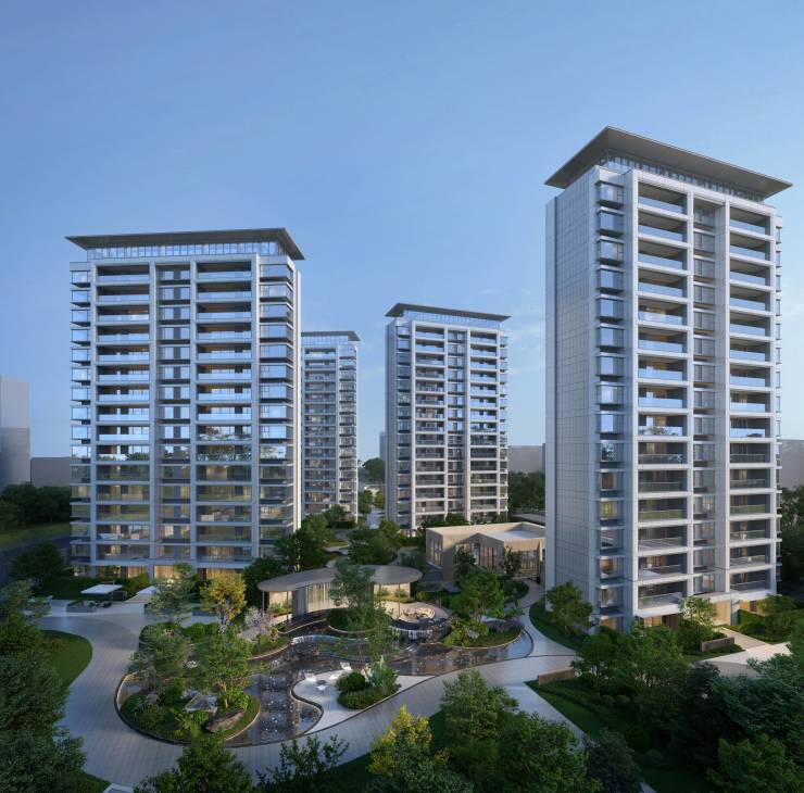 项目总户数仅147席,包含4栋全景平层(建面约140-175㎡)和3栋独层环墅(建面约205-285㎡),定位为纯改善型高端住宅。预计2026年5月30日交付,当前物业费为3.4元/㎡·月(由绿城物业或合作方管理)
