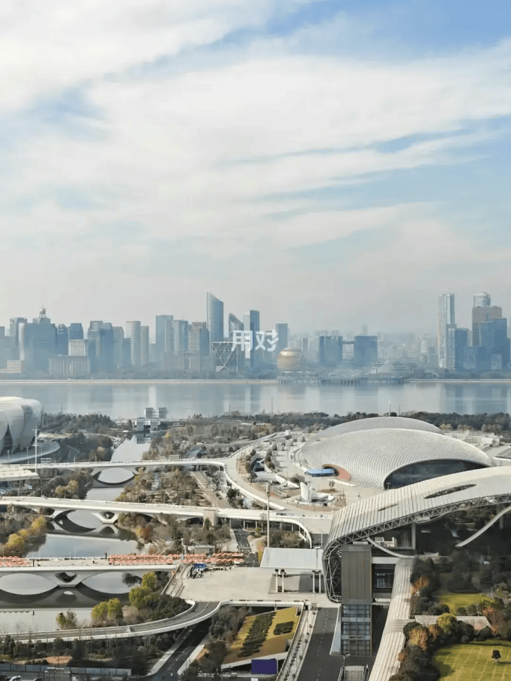 外立面 “丝绸流线”设计,灵感源自杭州织锦文化,玻璃幕墙如裙摆倾泻,夜间灯光极具辨识度