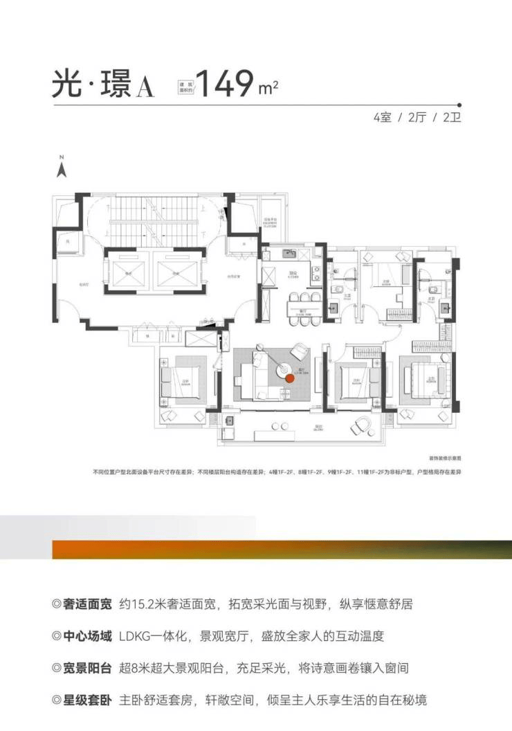 得房率:75-88%,因"不封阳台"设计,149㎡户型实用面积堪比竞品169㎡