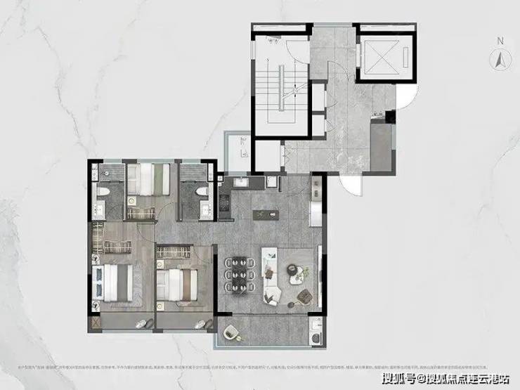 楼盘外立面:建筑外立面,实现千年古韵与现代立面美学结合,材质采用了世界塔尖奢宅标配的铝板和钻感玻璃,珍珠蓝搭配局部驼色点缀。