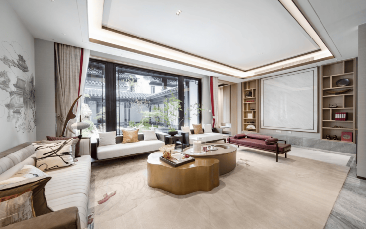 项目规模:总建筑面积约18.2万平方米,容积率仅1.2,合院片区容积率低至0.7,是杭州主城周边极为稀缺的低密墅区产品。