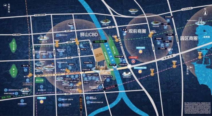 公交/自驾:西环快速路、金山东路等主干道环绕,15min可达苏州火车站,30min连通园区核心;周边分布金狮大厦、体育中心等