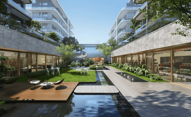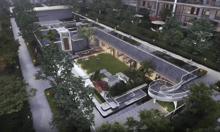 社区内部:打造“一轴一环五园”森系园林,含600㎡下沉庭院与1000㎡地下会所(配备健身房、瑜伽室、儿童活动区),真正实现“推窗见绿,下楼即景”。