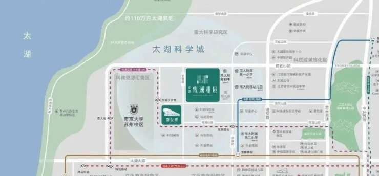 区域内大阳山、太湖国家湿地公园、太湖山水带环绕,12座山体、34条河道湖泊交织,生态环境优越。已新增和改造绿化约500万平方米,打造了彩石湖公园、恩古山公园、小茅山公园、诺贝尔湖公园等公园点缀,让您的生活更加宜居。