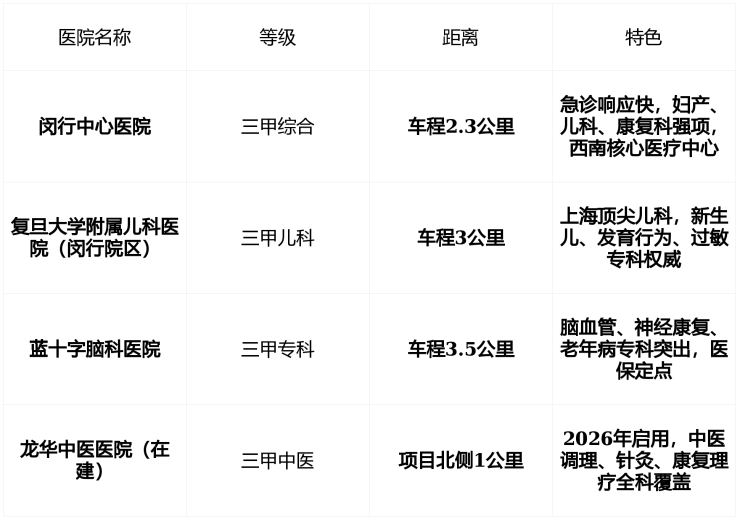 💡 安心感 :孩子发烧、老人慢病, 3–5分钟车程内有三甲+社区医院 , 不用半夜跑远 。