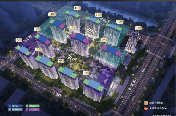 户型面积:主力户型为建面约135-224㎡的四室平层,得房率约82%。(部分房源已售罄)