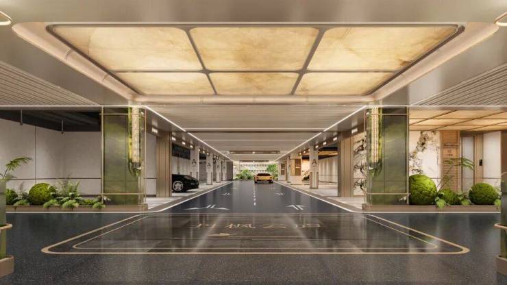 约4.35米豪宅车库层高标准,设计人车分流,定制星空穹顶车库;从驶入浪漫星空中,便开启浪漫之旅。线性光带、智能感应灯、延时灯光变暗等人性化设计,用灯光、赋予归程荣耀与安全。
