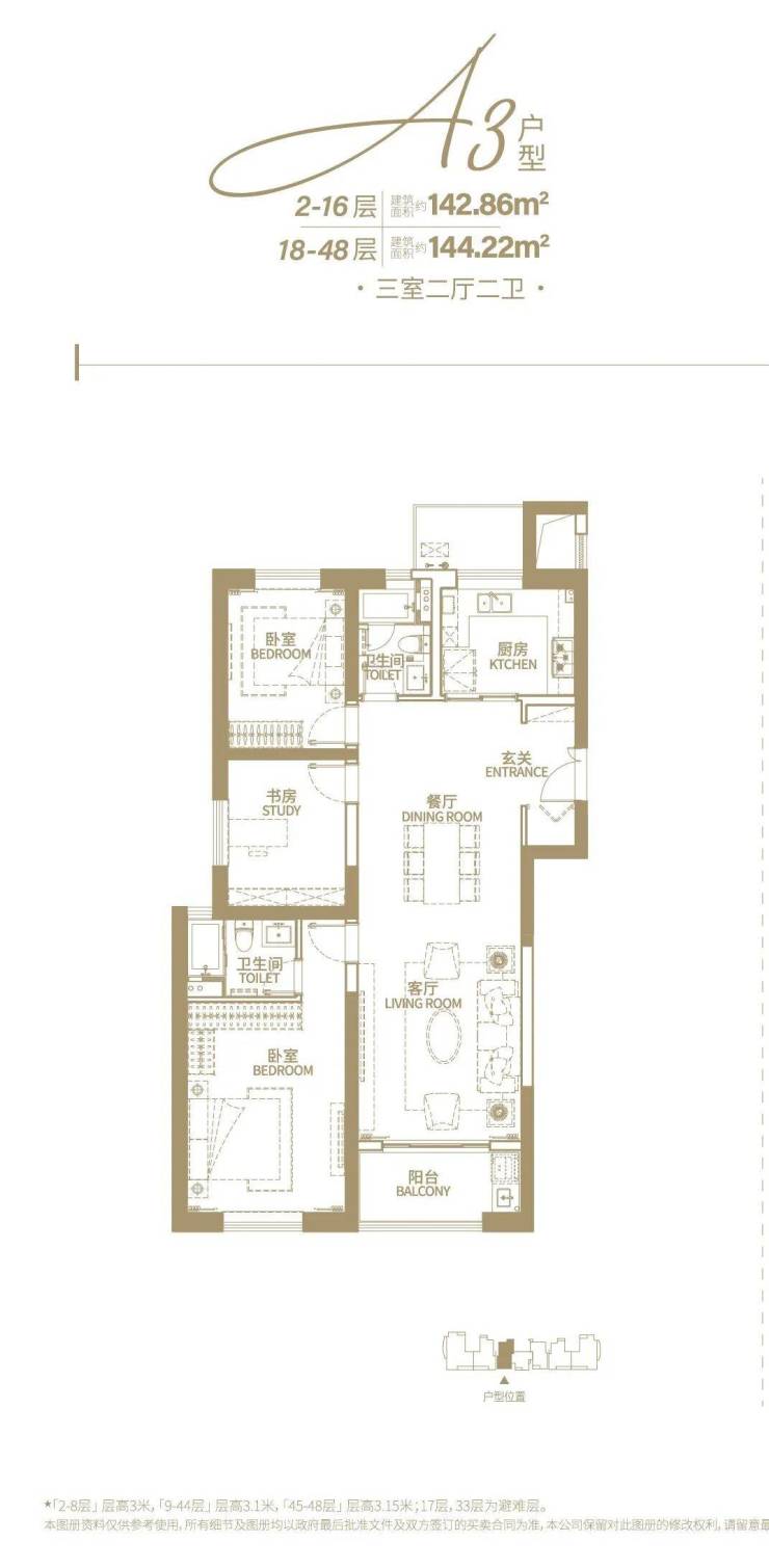 建面约144㎡户型: