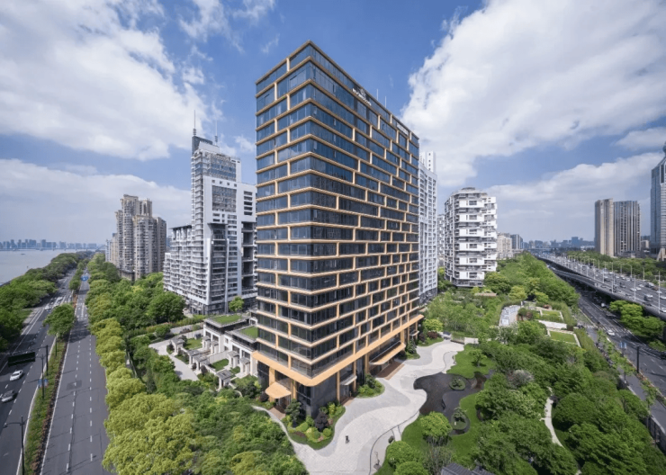 建筑设计:项目由亚洲建筑师协会金奖得主孟凡浩及其团队line+建筑事务所操刀,外立面以金色铝板曲面结合大尺度玻璃幕墙,灵感源自钱塘江“潮涌”。