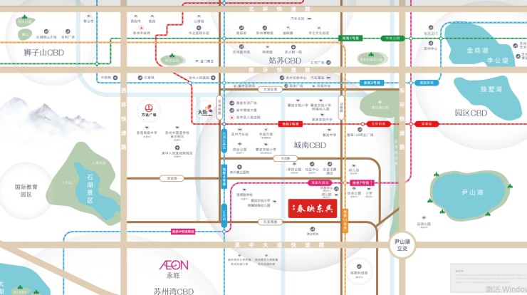 项目被2号、4号、7号、11号、15号五条地铁线环绕,是苏州少有的“地铁盘”,通勤效率极高。
