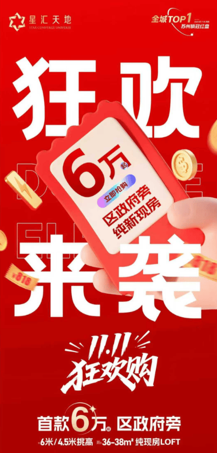产品类型:包括6米挑高LOFT(主力面积36-38㎡)和4.5米挑高公寓,产权40年,得房率约75%