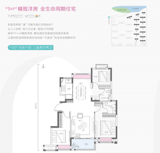 主力户型:89㎡三室两厅一卫、98㎡三室两厅两卫、109㎡四室两厅两卫、142㎡四室两厅两卫