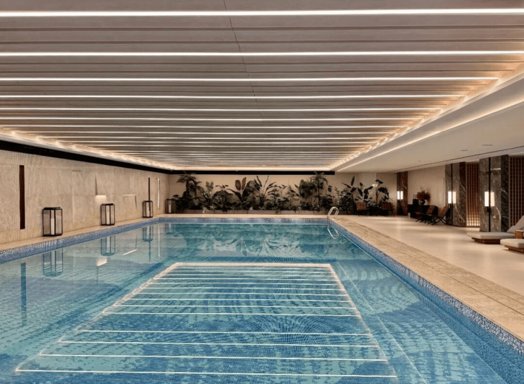 下沉式会所:约1000㎡,配备恒温泳池、瑜伽室、健身房、私宴厅、红酒雪茄吧,对标国际酒店服务标准。