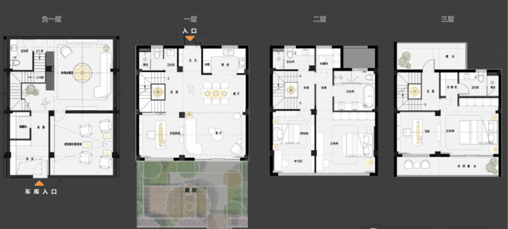 联排别墅首层挑空3.4米,二、三层层高3米;洋房标准层层高3米,四开间朝南设计