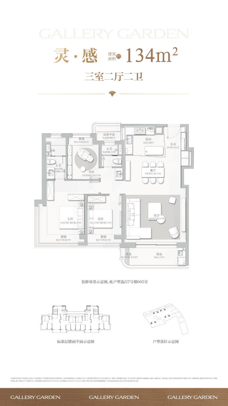 134㎡三房:客厅面宽超4.7米,预留岛台位置,主卧面宽超3.6米并配置270°飘窗,采光与视野俱佳。
