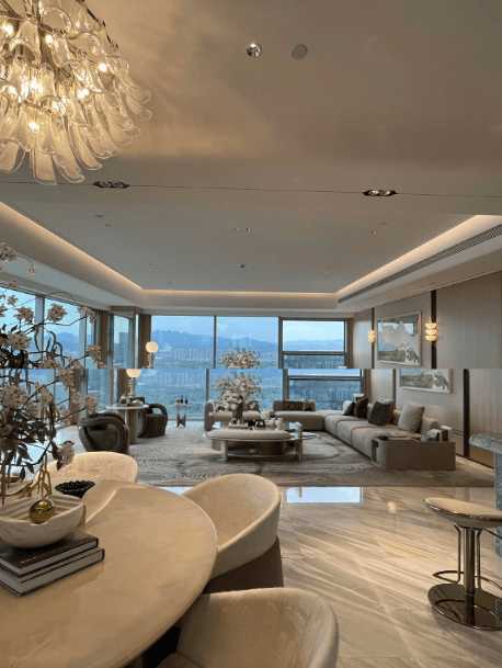 大平层:建面约315–320㎡,精装交付,总价650–750万元,层高3.3米,得房率约80%