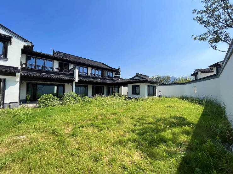 合院采用“白墙黛瓦+玻璃幕墙”现代中式风格,层高3.3米(一楼),地下室5.7米可自由分割