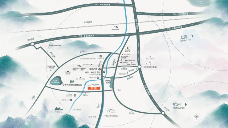 3、交通利好:项目距离杭州50余公里;项目至上海221公里。高速通达:S14杭长高速余杭段,针对浙A牌照小客车ETC免费通行;申嘉湖高速西延线安吉段已经全线通车,安吉到湖州车程直接减半。高铁在建:商合杭高铁结合在建中的沪苏湖高铁,未来,安吉到上海乘坐高铁将更加迅捷。