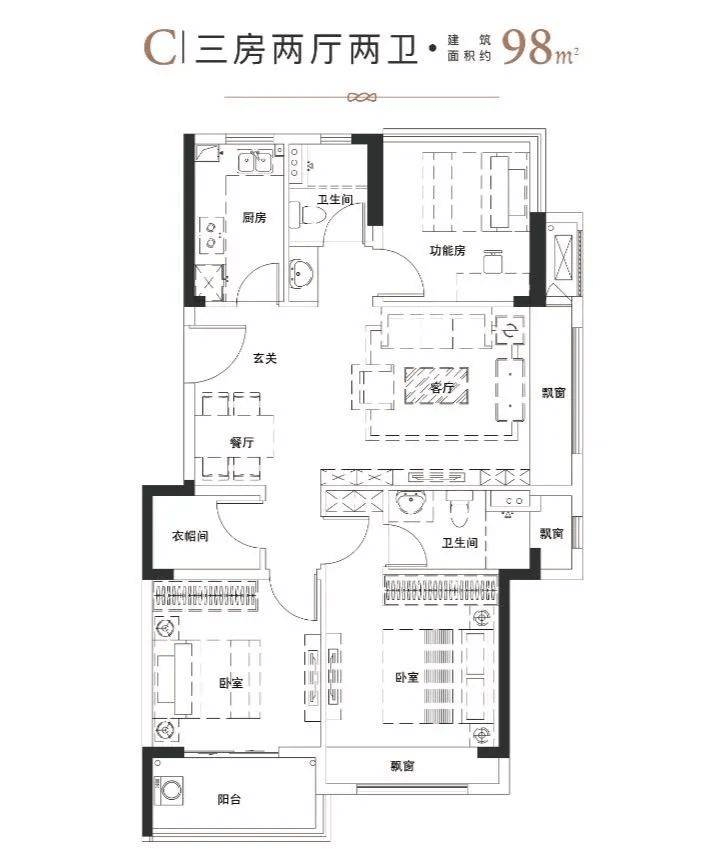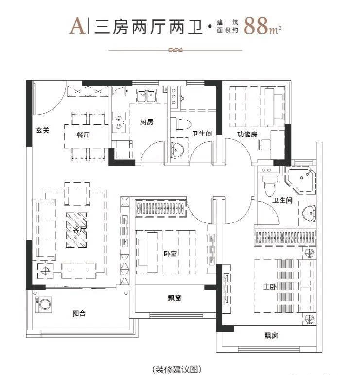 三居:建面约88㎡、98㎡(南北通透,全明格局);