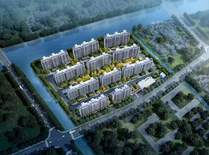 项目紧贴 白茆塘河道 ,11栋小高层呈弧形布局, 户户享无遮挡河景视野 。不是“看水”,是 推门即临水、晨起听浪声 。前排楼栋阳台直面水面,傍晚可看渔船归港、白鹭低飞——这在常熟,是唯一能“把河道当后花园”的低密社区。