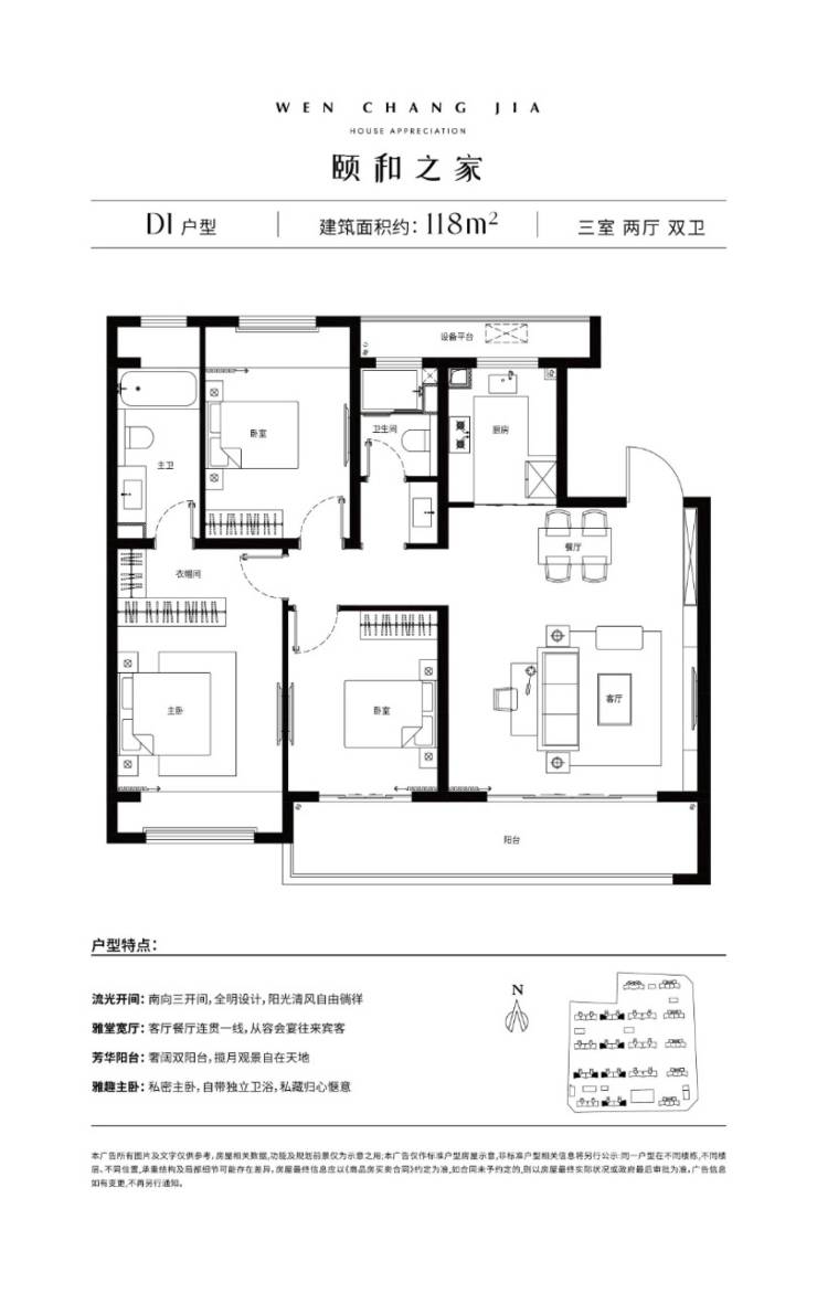 三室两厅两卫:建面约103㎡,总价约195.5万/套;建面约118㎡,总价约225.5万/套。