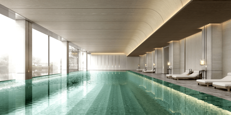 社区规划:容积率仅2.0,绿化率35%,打造约2000㎡下沉式庭院会所,配备恒温泳池、健身房、私宴厅、儿童游乐区等,实现“度假式”社区生活。