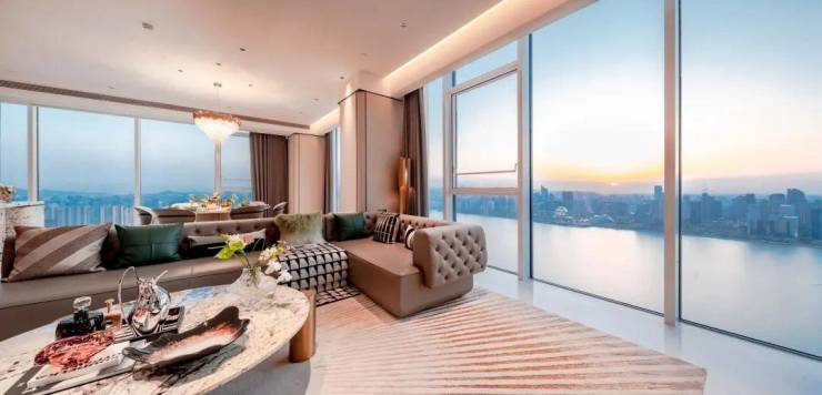 【一城仰望的头排穹顶】纵观杭州,大平层产品鲜有百米之上的起步高度,IOC·潮鸿约150米江岸云端,起点,即是他人的制高点。