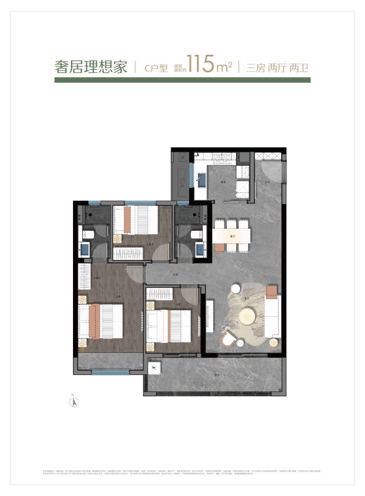 💡 提示:115㎡楼王户型为四开间朝南+6米观景阳台,采光通透,是家庭改善首选。